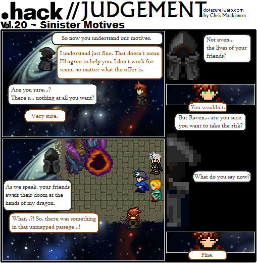 An enigmatic black-cloaked figure dictates Raven's destiny.
